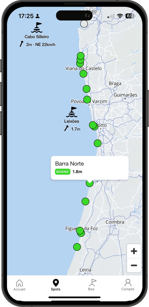 Accedi alle webcam in tempo reale direttamente da ogni spot, con immagini aggiornate che ti permettono di vedere le condizioni reali del mare prima di uscire di casa.