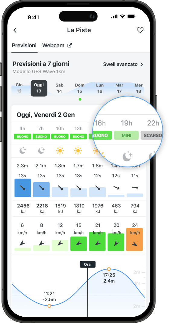 Accedi alle webcam in tempo reale direttamente da ogni spot, con immagini aggiornate che ti permettono di vedere le condizioni reali del mare prima di uscire di casa.